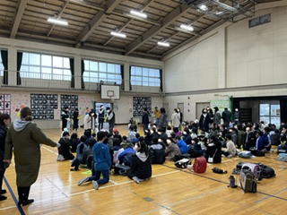 今日の放課後に、PTA安全部のみなさんに「登校班班長旗講習会」を開いていただきました。