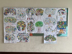 先週末まで取り組みを進めていた読書週間ですが、各クラスの読書の木が2階渡り廊下を渡ってすぐ(図書館へ行く道のりです)に掲示されていました。
