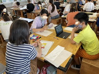 6年生は図工の時間に志氐神社の夏祭りで展示される行燈の作成を進めていました。羽津地区まちづくり推進協議会さんからご依頼があり、毎年6年生の子どもたちが作成しています。夏祭りにお越しの際は、ぜひ見てくださいね。