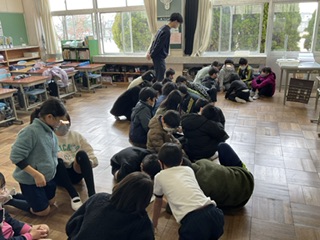1・6年生、2・5年生、3・4年生のきょうだい学年で、高学年が主になってクイズやゲームをやったり大縄跳びを一緒にやったりしました。