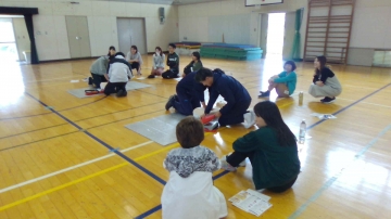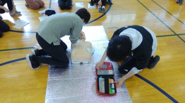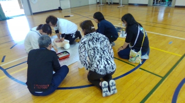 胸骨圧迫、AEDの使用などの手順や留意点を確認しました。