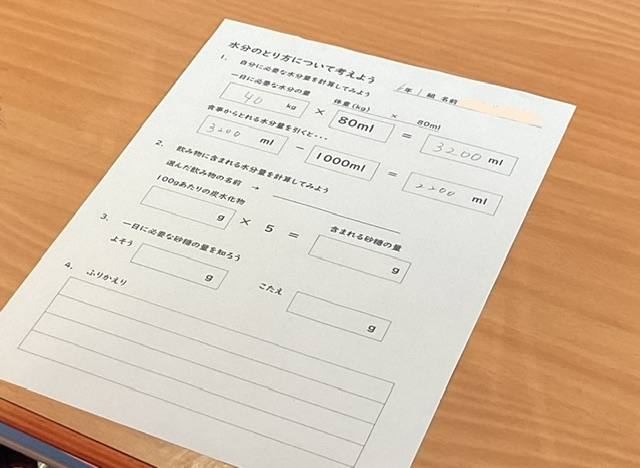 どんなタイミングで水分をとると良いのか、また、水分だけで良いのかなど、子どもたちは、これまでの生活経験なども踏まえながら、しっかりと考えることができていました。