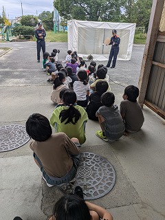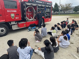 22日(火)に四日市北消防署の消防士さんに防火教室を開いていただきました。