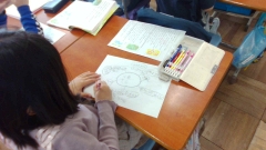 2年生の国語の時間「風のゆうびんやさん」という学習を行っています。今日の授業では、登場人物である「くもさん」の様子を思考ツールであるイメージマップを使って、「くもさん」の様子を広げていきました。子どもたちは自分のイメージしたことを友達の意見を聞いたり、話をしたりしながら、どんどんイメージをふくらませていく姿が見られました。