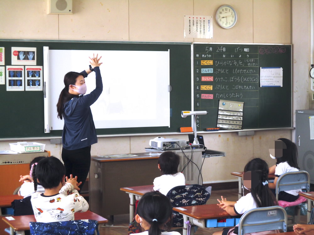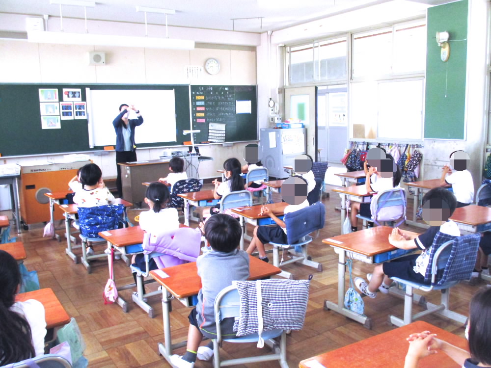 今日は、朝の学習の時間に保健室の濱田先生に手の洗い方とマスクのつけ方についてのお話をしてもらいました。