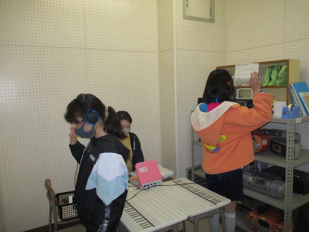 とても小さい音を確認するので、放送室を使って2人ずつ検査をします。