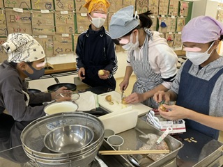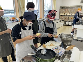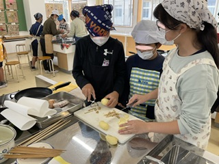 さて、6年生は家庭科室でジャーマンポテトの調理実習のチャレンジしていました。まだ感染症に気をつけながらの実施ということで、自分の分を自分で作るという形で進めています。