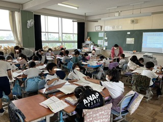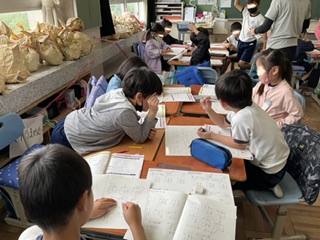 さて、感染症も5類となり教室の中では、以前通りの授業風景があちこちで見られるようになってきました。2-2では算数の時間にグループ学習をしていました。子どもたちが自分たちで聴き合ったり教えあったりすることは、子どもたちの学びには大切な活動です。また、マスクを着用する子も日に日に減ってきています。