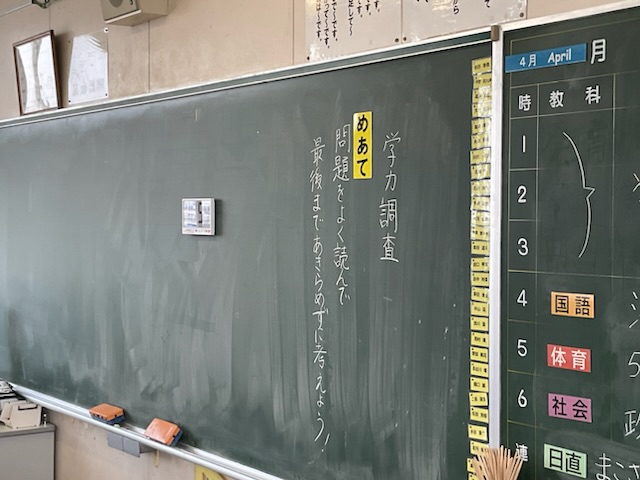 今日は、全国学力・学習状況調査の実施日。6年生は集中してテストに取り組んでいました。5年生までに学習したことを生かして、最後まで諦めずに問題に取り組んでくださいね。