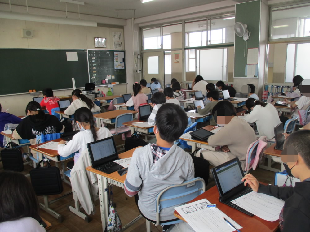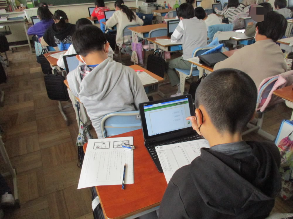 さて、先日の6年生の全国学力・学習状況調査に続き、今日は5年生が「みえスタディチェック」を受験しています。今年はCBT(コンピューター・ベースド・テスティング)化され、タブレットを使っての受験となりました。