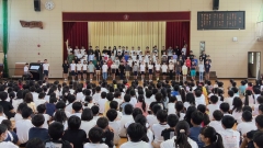 9月26日(金)に開催される三泗音楽会に向けて、6年生の子どもたちが全校児童の前で「言葉さがして」を披露しました。素敵な歌声と一人ひとりの想いが重なり、体育館いっぱいに温かい空気が広がりました。
