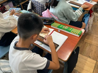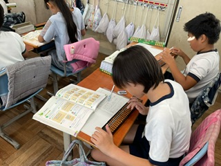 今日は、4年生が算数の時間にそろばんの授業をしていました。