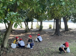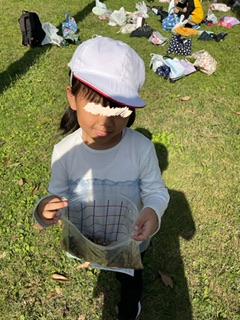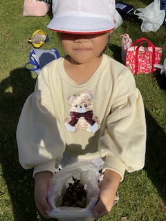 1年生が1〜3時間目に霞⭐︎ゆめくじら公園で、どんぐり拾いを楽しみました。一人ひとりが袋いっぱいに、どんぐりや松ぼっくりを集めていました。