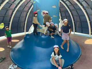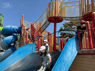 どんぐり拾いが終わったら、お楽しみタイム。遊具で友だちと仲良く楽しい時間を過ごすことができました。