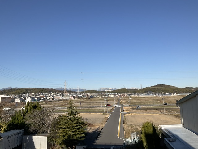 今日は朝から雲ひとつないいいお天気。鈴鹿の山並みの雪化粧がとっても美しく見えます。