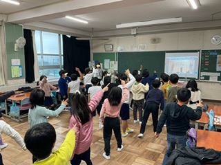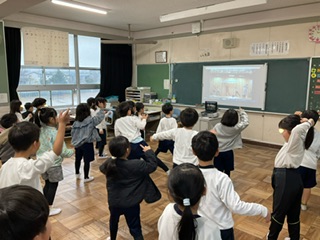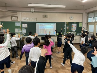 今年の羽津北小学校は1・2年生が参加。残念ながら三重北小がライブ会場のためリモートでの参加になりましたが、子どもたちはノリノリでダンスを楽しんでいました!