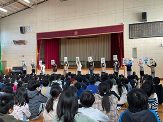 6年生の代表児童が、先日開催された羽津中学校区人権フォーラムの環流をしてくれました。人権の大切さや人権フォーラムで新たに気づいたことなどを伝えてくれました。
