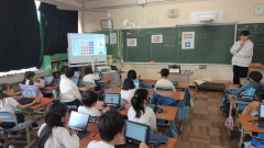 2年生では、現在算数の授業で「かけ算」の学習を進めています。今日の授業では、△・▢・〇の形がいくつあるのかを、かけ算を使って工夫して求める活動に取り組みました。