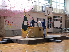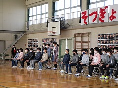 昨日は5年生が保護者席に座って、練習に参加しましたが、今日は4年生の子ども達が、卒業証書授与の様子を見学しました。