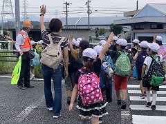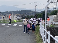 今日の1年生の遠足は、1年生だけで初めて長い距離を並んで歩くことになったので、少し心配していたのですが、「けやき委員会(羽津北小学校コミュニティスクール)」の委員さんにご協力いただき、行きも帰りも旧道や国道1号線の交差点で子どもたちを見守ってくださいました。