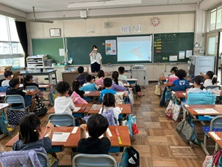 今日は1年生が食育の一環で、お箸の持ち方を練習していました。動画を使いながら1年生の子どもたちにも分かりやすく指導しました。