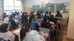 授業では、中学校での行事や部活動について「何が楽しみか」「何をしてみたいか」といったテーマで、英語を使って自分の気持ちを表現する学習に取り組みました。