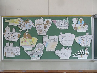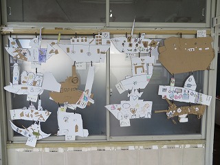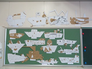 ダンボールでつくる「ゆめのおふね」がかんせいしました。せかいにひとつのすてきなふねです。きょうしつやろうかにけいじしてあります。こんだんかいのときには、ぜひみてくださいね。