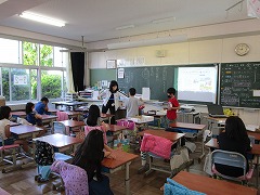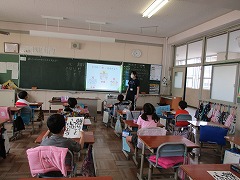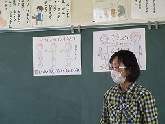 今日もまた昨日に引き続き1~5年生の各クラスで学年に応じた感染症予防についての学習をしました。言葉で1~2メートルと聞くだけでなく、実際に手を広げたり、テープと物差しで長さを測ったりしながら「ソーシャルディスタンス」を確認したり、具体的な場面を想定しながら「3密」について学習したりしました。