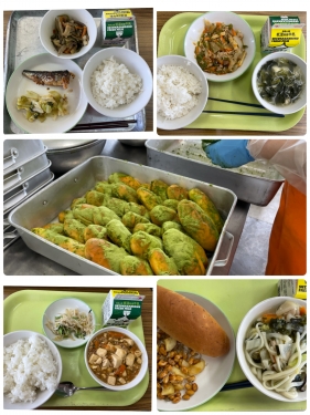 14日:小型玄米パン 牛乳 わかめうどん 小魚入りポテトビーンズ(三重地物一番給食の日)