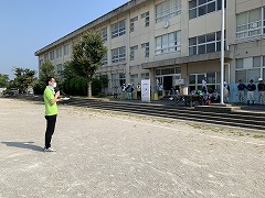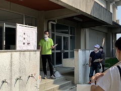 「2学期が始まる前に、普段手の行き届かない場所をきれいにして、子どもたちが気持ちよく新学期が迎えられるように」と、校庭の草刈りや玄関周りの樹木の選定、トイレの尿石取りをしていただきました。