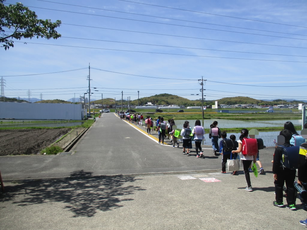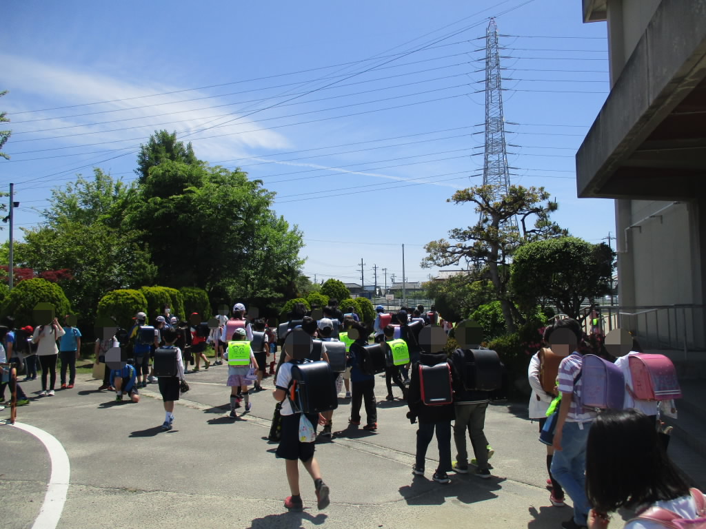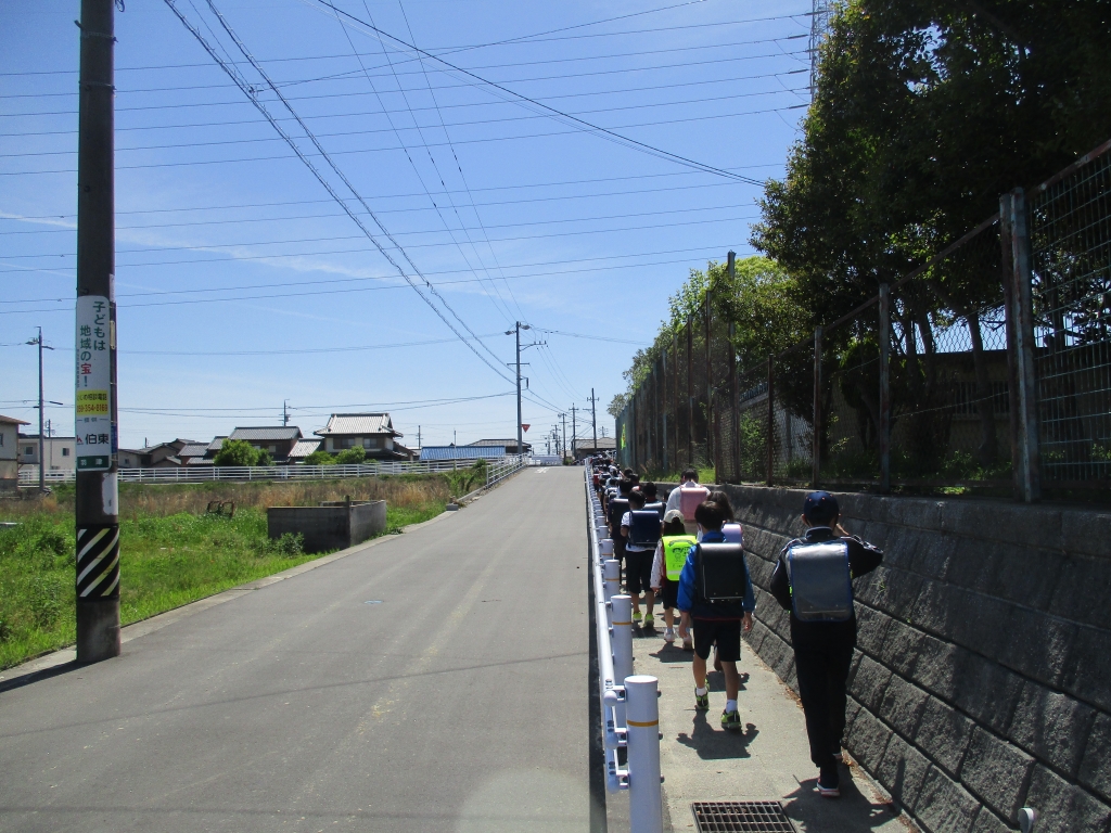 今日から来週の11日(火)までは、家庭訪問週間。この期間、子どもたちは給食終了後、集団下校で帰ります。下校時刻には、登校班の班長さんたちが1年生をしっかりと迎えに行って集合場所に連れてきてくれました。