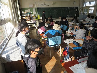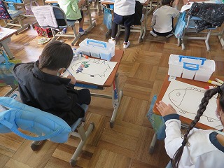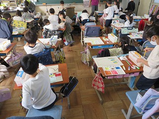 生かつかの学しゅうで、6ねん生のじゅぎょうのようすを見学させてもらいました。はじめて見るすがたに、「かっこよかった!」「しずかやった。」「ぼくも6ねん生みたいになりたい。」とみんなだいこうふんでした。