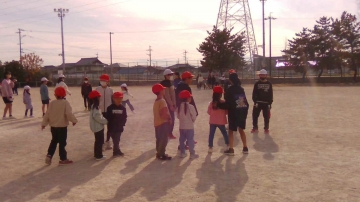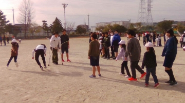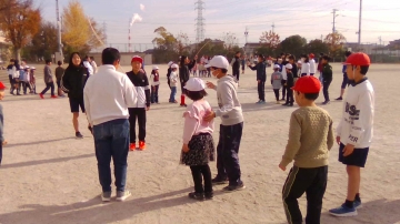 6年生が1年生に大繩跳びの入り方のこつなどを教えていました。