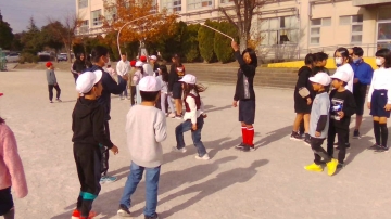 休み時間は運動場のあちこちで子どもたちが縄跳びをしています。