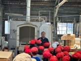 職人の方がろくろ成形している様子や焼きがまの中を見させてもらいました。