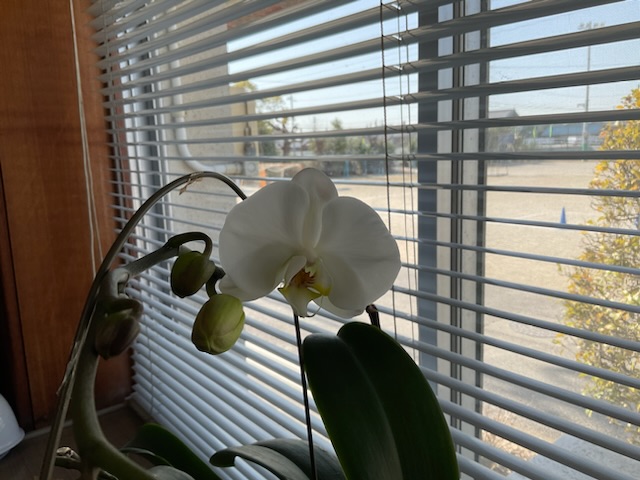 校長室の胡蝶蘭が、3回目の春を迎えて開花しました。胡蝶蘭は育てるのが難しいと言われましたが、特に手間をかけることもなく、月に数回の水やりだけで毎年開花してくれます。羽津北小の環境が胡蝶蘭には合っていて居心地がいいんだと思います。本校が子どもたちにとっても最高に居心地の良い場所になるよう、学校づくりを進めていきたいと思います。