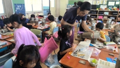 2年生は、萬古の里会館より講師の方をお招きし、陶芸体験としてランプシェードづくりに挑戦しました。土の感触を楽しみながら、世界に一つだけの作品づくりに夢中になる子どもたちの姿が印象的でした。