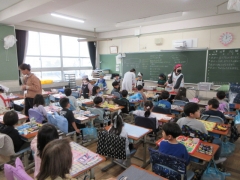 今日から、令和8年度の給食がスタートしました。 1年生にとっては、小学生になって初めての給食です。配膳の仕方を先生と一緒に確認しながら、どの子も楽しみにしている様子が見られました。