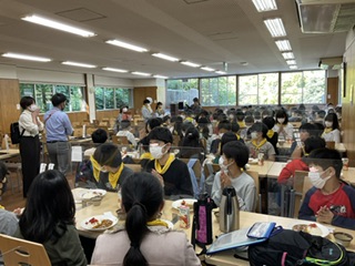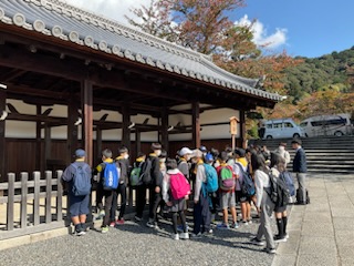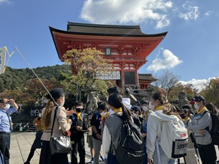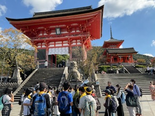 清水寺の仁王門前でまずは学級写真撮影。その後、お昼ご飯をいただきました。