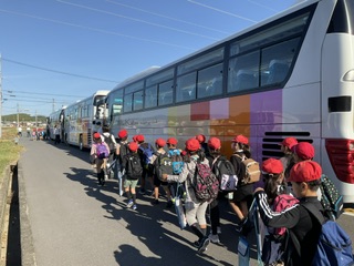 今日も気持ちのいい秋晴れになりました。そんな良い気候の中、昨日の5年生に続き今日は3年生が社会見学へ出発しました。茶業振興センターさんと四日市酪農さんにお世話になります。