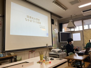 今日の研修テーマは「仲間づくり」。四日市市教育委員会人権・同和教育課から指導主事をお招きして、2学期までの各学級の仲間づくりに関わる実践を交流しながら、子どもたちの人権感覚向上について研修しました。