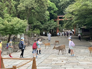 ほぼ予定通り奈良公園に到着しました。子どもたちは、たくさんの鹿に大興奮。