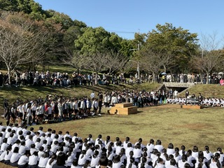 今日は秋晴れの素晴らしいお天気。そんな秋晴れの青空の下、羽津中学校主催の「山のコンサート」が開催されました。