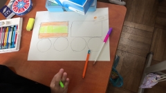 1年生の算数の時間では、箱の面に注目した学習を行っています。今日は子どもたちは実際に箱の面を写し取りながら、形の特徴や構成について楽しく学びました。その後、写し取った面を使って、ロボットや電車などの工作に挑戦!自分のアイデアを形にする喜びを味わいながら、図形への理解を深めることができました。
