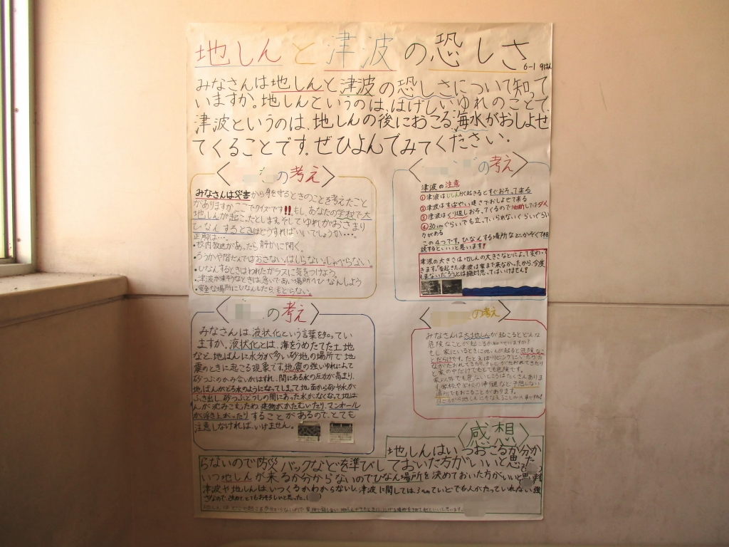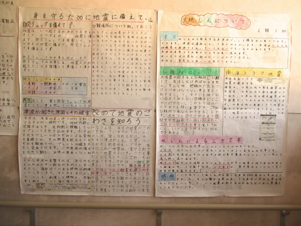 いつ起こるかわからない災害。子どもたちが作った新聞を見ながら、日ごろからの心構えが必要だと改めて感じさせられました。