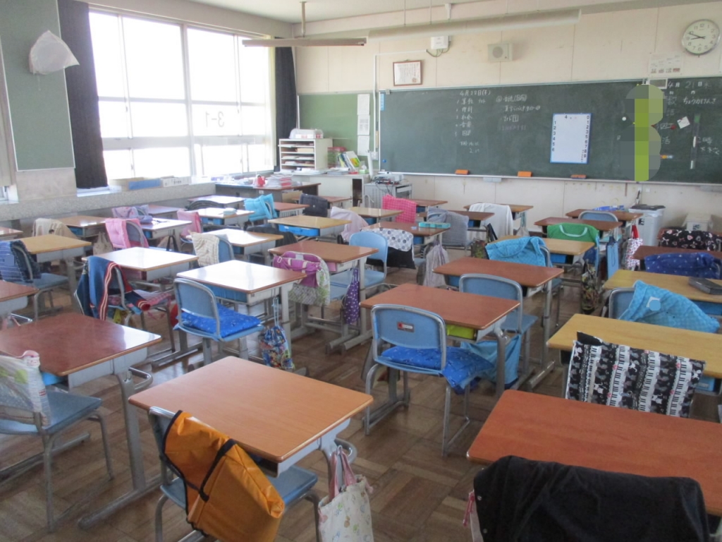 1日の授業の中には、音楽や図工、体育など自分たちの教室以外の場所で学習することもあります。ほかの場所へ移動した後の教室の様子を見ると、どの教室も子どもたちの椅子が机の中にきちんとしまってあり、机の上にもほとんど無駄なものが置いてなく、教室内は整然としていました。