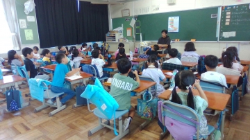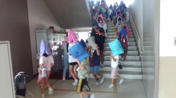 6日(金)暑さ対策の点からも、1時間めに避難訓練を実施しました。