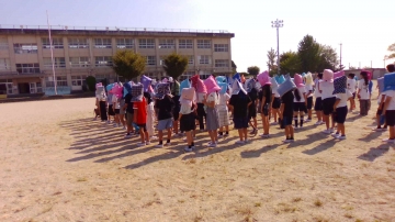 地震発生→1次避難(運動場)→津波発生→2次避難(校舎3階)