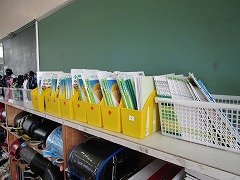 学校では写真のように子どもたちの教科書などをお預かりしています。詳細は「けやきっ子№.7」をご覧ください。
