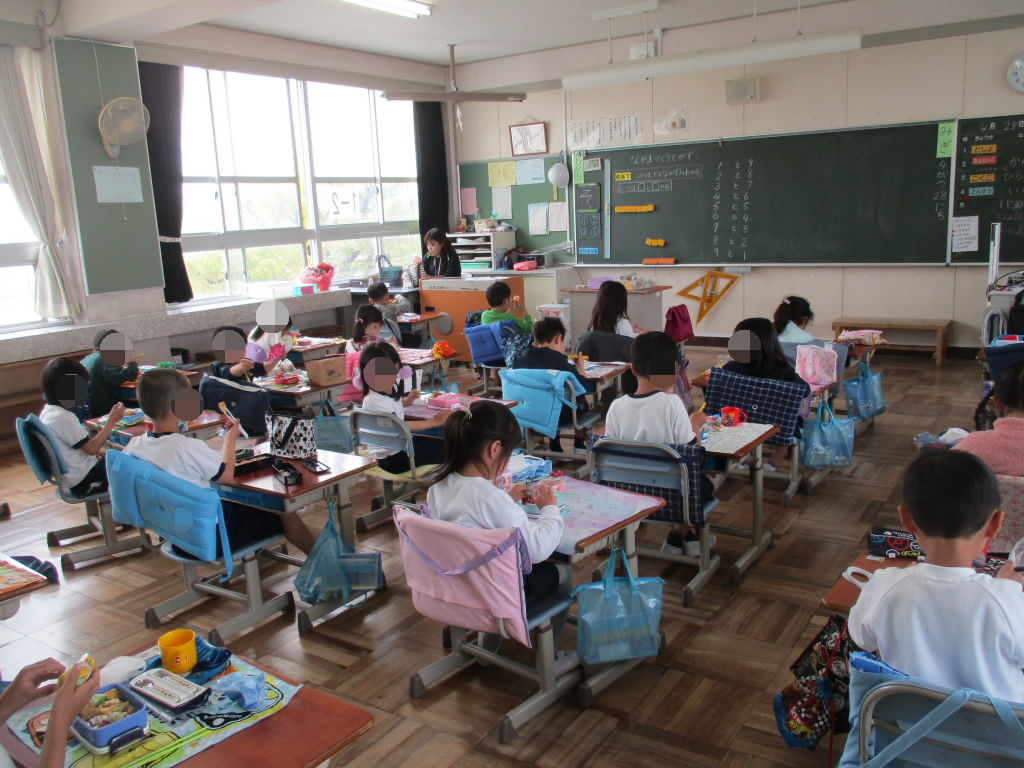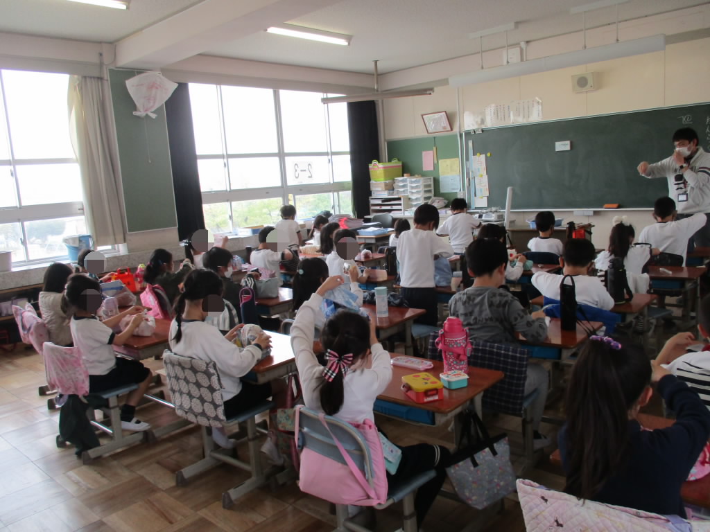 給食もおいしいけど、やっぱりお弁当は特別ですね!みんな黙って食べてはいましたが、表情は満面の「おいしい顔!」でした。